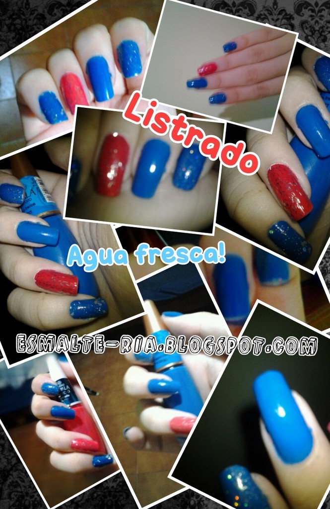 Eu usei o Listrado da coleção Disco, da impala, como filha unica e o Agua Fresca nas outras unhas, também da impala, da coleção Tropocaliente. Em algumas suas eu usei a cobertura Star, da Risque, em outras o Disco Ball, da impala também da coleção Disco, e em outras duas o Atitude Pop, da coleção Rebeldes 2. O que acharam da minha bagunça?